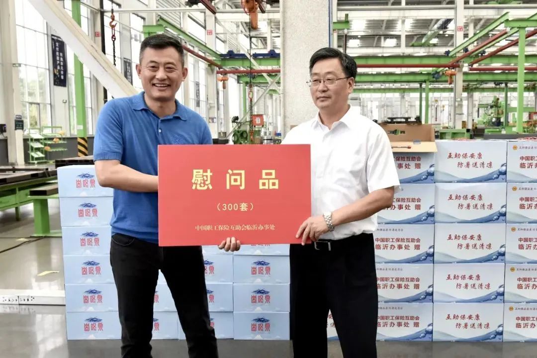 2023年7月20日,市人大常委会副主任、市总工会主席刘飞,市总工会党组成员、经审委主任于建坤一行,在区人大副主任、区总工会主席王爱君,区总工会党组书记、常务副主席陈纪晓,区人大副主任、兰山经开区党工委书记王玉杰,公司党委书记、董事长付彬的陪同下,到我公司开展职工互助保障,“夏送清凉”活动。