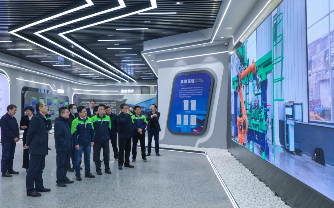 特邀嘉宾国家工业和信息化部中小企业局副局长、一级巡视员王海林同志,省工业和信息化厅党组成员、副厅长安文建,省工信厅非公处长(中小)栾永强一行,中国工业互联网研究院智能化研究所副所长顾维玺,在临沂市人民政府副市长、党组成员毕黎明同志的陪同下,莅临华星机械开展数字化转型调研活动。 在总经理刘宏的陪同下,乘车参观了油箱、铲斗及重机车间。在企业展厅,刘宏总汇报了公司发展历程及产业规划、业务范围等,并观看宣传片,参观产品展厅,细致的询问每一类产品的用途、施工场景、技术要求等。刘宏总都做了详细的讲解,对华星的产品有了新的了解和认识。王海林副局长等一行,对公司生产自动化程度,数智化改造等给予肯定,对智能制造焊接生产线、车间现场管理、厂容厂貌及公司远景规划等给予较高评价。 在智能控制中心,王副局长、毕副市长等领导,调研远程控制钢板切割、焊接、机加工等数智化控制,对公司数字化转型的现状和决心给予高度评价。对中小企业现在面临的“招工难、招技能工更难”、融资问题、人才问题、中小企业发展以及产融合等广泛进行了探讨交流。参加调研的市、区领导还有:市政府办公室副主任、党组成员朱丙法,市工信局局长、党组书记王林艳,兰山区委常委,区政府副区长、党组副书记刘元迅、兰山区工信局长王伟等人。兰山经开区分管领导徐有福,公司总经理刘宏、谭金煜、崔士启等全程接待。