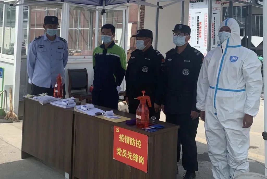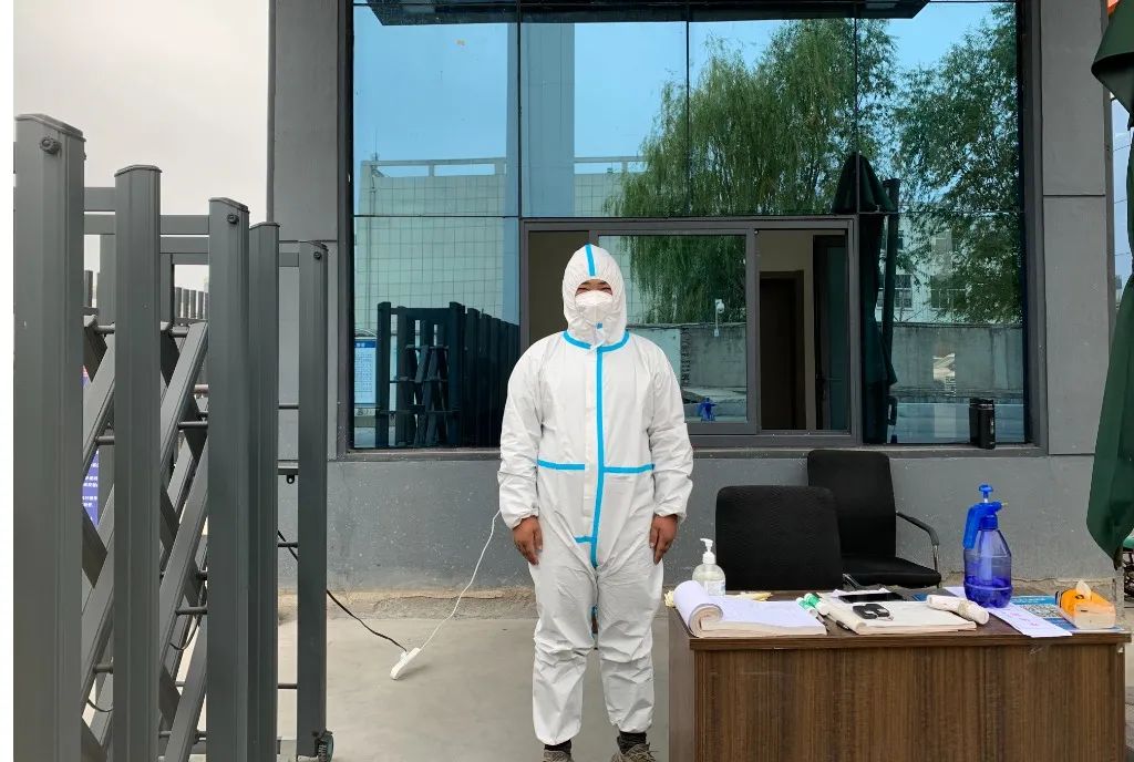 在疫情面前,公司保安就像“门神”一样,24小时坚守在各个出入口,防疫消杀、检查车辆、外来人员扫码登记、测量体温、站岗执勤、晚间巡逻等,确保打好疫情防控阻击战。